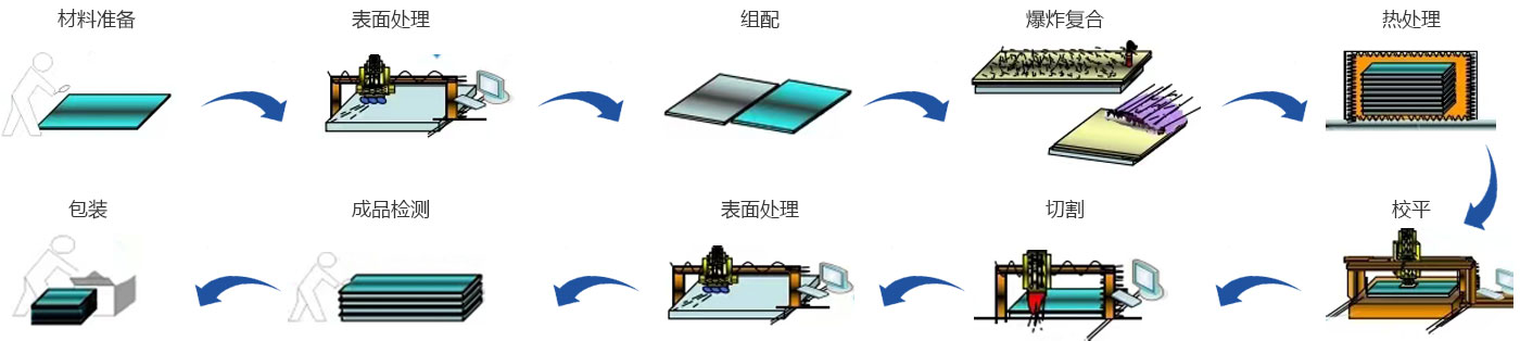 不銹鋼復合板爆炸復合的生產方法。 爆炸復合是將不銹鋼板重疊置于碳鋼基板上,不銹鋼板和碳鋼基板之間用墊子間隔出一定的距離,在不銹鋼板上面平鋪炸藥,炸藥爆炸的能量使不銹鋼板高速撞擊碳鋼基板,產生高溫高壓使兩種材料的界面實現固相結合。 不銹鋼復合板是以碳鋼基層與不銹鋼覆層結合而成的復合板鋼板。它的主要特點是碳鋼和不銹鋼形成牢固的冶金結合,可以進行熱壓、冷彎、切割、焊接等各種加工,有良好的工藝性能。不銹鋼復合板的基層材料可以使用Q235B、Q245R、Q345B,Q345R等各種普通碳素鋼和專用鋼。覆層材料可以使用304、316L、321和雙相不銹鋼等各種牌號的不銹鋼。材質和厚度可以自由組合,滿足不同用戶的需要。不銹鋼復合板已經廣泛應用于石油、化工、鹽業、水利電力等行業。不銹鋼復合板作為一種資源節(jié)約型的產品,減少貴重金屬的消耗,大幅度降低工程造價。實現低成本和高性能的***結合,有良好的社會效益。 不銹鋼復合板是怎樣生產的呢?不銹鋼復合板工業化生產主要有兩種方法,爆炸復合和熱軋復合。爆炸復合板的生產工藝是將不銹鋼板重疊置于碳鋼基板上,不銹鋼板和碳鋼基板之間用墊子間隔出一定的距離。不銹鋼板上面平鋪炸藥,炸藥爆炸的能量,使不銹鋼板高速撞擊碳鋼基板,產生高溫高壓使兩種材料的界面實現固相焊接。理想狀態(tài)下,界面的每平方毫米的剪切強度可以達到400MPa以上。熱軋復合板工藝是以碳鋼基板和不銹鋼板處于物理純凈狀態(tài),在高度真空條件下進行軋制而成。在軋制過程中兩種金屬擴散實現完全的冶金結合。但是不能解決10mm以上金屬的復合,這種焊接只具有壓軋焊接的特點,不像爆炸焊接融合了壓力焊、熔化焊、和擴散焊的特點,爆炸焊為不同基體金屬的結合提供了更多和更好的條件。正因為如此,同種和異種金屬都可以爆炸焊接以上兩種復合板制造方法都執(zhí)行GB/T-8165-1977國家標準。該標準非等效采用日本JISG3601-1990標準,主要技術指標相同或高于日本標準。 那么爆炸復合工藝特點如何呢?爆炸復合的特點:一、由于爆炸復合是冷加工,因此它可以產生100多種金屬復合板,如鈦、銅、鋁等等。二、爆炸復合可以生產不銹鋼復合板總厚度可以達到幾百毫米厚的不銹鋼復合板,不銹鋼復合板兼具各種碳素鋼和不銹鋼的特點,以其優(yōu)異的性能價格比為用戶歡迎,有廣闊的市場前景。但有趣的是,從五十年代開始,經過半個多世紀風風雨雨的開發(fā)過程,仍然有很多人不知道它。更多的人未使用過它。應該說不銹鋼復合板的市場遠未進入成熟期,仍在開發(fā)過程中。科技工作者為建設資源節(jié)約型社會的探索和努力永遠不會停止。洛陽京久金屬復合材料有限公司致力于各種金屬爆炸復合材料的研究與開發(fā)生產,永不停歇的努力滿足社會發(fā)展對金屬復合材料的需求。